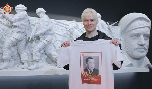 Певец принял участие в акции «Бессмертный полк», которая в этом году проходит в новых форматах. Портрет своего прадеда Shaman нанес на одежду.