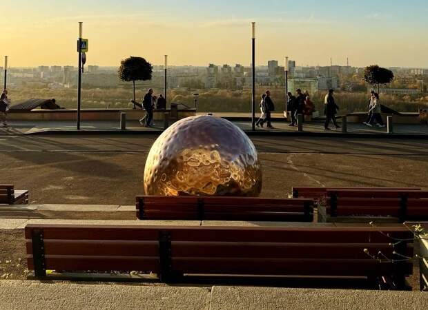 В Нижнем Новгороде установили необычный арт-объект «Солнце ждёт рассвета». Это работа уличного художника Гриши Шарова, она находится около отеля AZIMUT. Как пояснили представители отеля, с фасада здания видны только закаты, а вот рассветы всегда прячутся за самим зданием. Художник заметил это в свой первый вечер в городе и решил «посадить» солнце на лавочку прямо на входе в гостиницу.