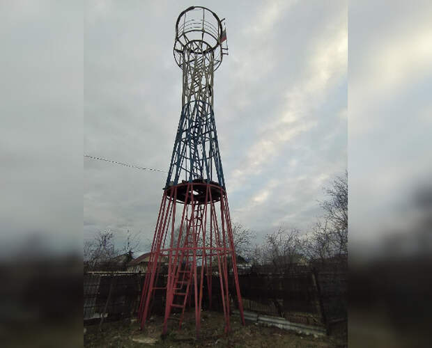 6. Пожарная каланча конструкции инженера В.Г. Шухова (Балахнинский район, п. Ляхово, ул. Большая). Появление противопожарного комплекса в поселке Ляхово Балахнинского района Нижегородской области связано с деятельностью в России и Советском Союзе добровольных пожарных дружин. Для пожарных дружин в поселках выделялись отдельно стоящие здания общественного назначения — депо. Противопожарный комплекс в поселке Ляхово состоял из дореволюционного деревянного двухэтажного дома — депо и непосредственно пожарной каланчи высотой около 14 метров, выстроенной, судя по историческим документам, в 1935 году. Известно имя мастера, руководившего возведением в Ляхово уникального гиперболоидного сооружения по принципам инженера В.Г. Шухова, — это Феоктист Степанович Третьяков, местный житель, высококлассный специалист, котельщик, рабочий завода «Красное Сормово».