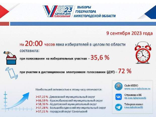 Хотя еще днем явка составляла около 25 процентов.Самыми активными оказались жители Дивеевского, Краснобаковского и Ардатовского муниципального округа, где цифры приблизились к 70 процентам.