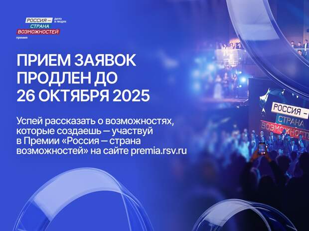 До 26 октября жители Нижегородской области могут подать заявку на участие во втором сезоне Премии Президентской платформы «Россия – страна возможностей». В 2025 году Премия будет вручаться в 10 номинациях: «Служение и созидание», «Наука и технологии», «Экология», «Спорт и уличная культура», «Добрые дела», «Предпринимательство», «Культура», «Медиа», «Образование» и «Возможности для СВОих».
