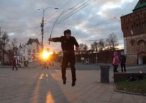 В Нижнем Новгороде семья Костандовых сняла ролик со скакалкой на площади Минина и на территории Кремля.