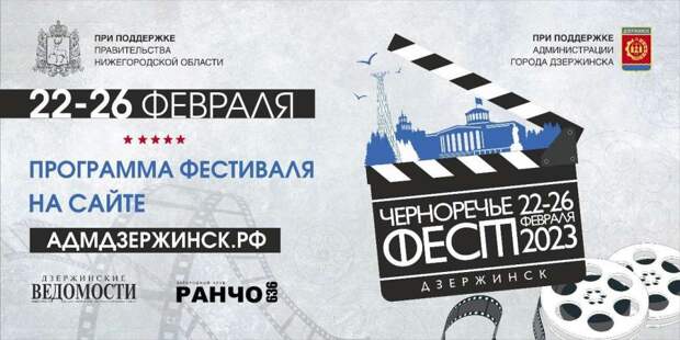 Напомним, с 22 по 26 февраля в Дзержинске состоится первый открытый российский фестиваль отечественного кино «Черноречье Фест». В его рамках пройдут более 20 мероприятий – спектакли, творческие вечера и мастер-классы, а также конкурсная программа игровых короткометражных и полнометражных фильмов.