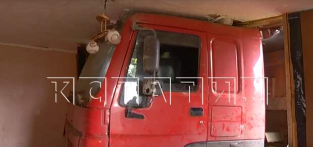 В нем в стене застряла кабина грузовика.Само авто пока не извлекают: на место должны приехать страховщики и оценить повреждения. А компания, которой принадлежит фура, пытается найти способ достать ее, чтобы дом не сложился полностью.