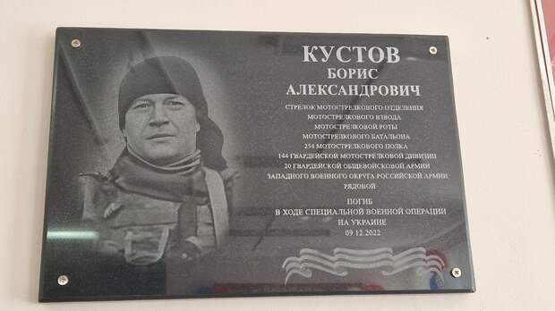 Памятную доску в честь военнослужащего Бориса Кустова, погибшего в спецоперации, установили в школе в селе Сергеевка. Об этом сообщила глава Большеболдинского округа Алла Морозова. 8 мая прошла торжественная церемония открытия. Также в школе создали музейную экспозицию и отдельный класс в честь павшего героя.