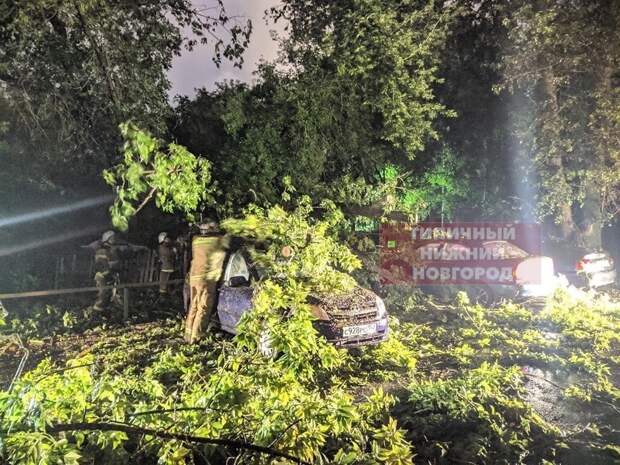Непогода в очередной раз обрушилась на регион. В Арзамасе вечером 13 августа на припаркованные машины упали деревья.