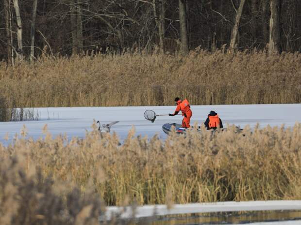 Без возможности летать птица была бы обречена на гибель. Поэтому люди решили помочь одинокому лебедю-шипуну.14 ноября спасатели потратили целый день, пытаясь выловить птицу на двух лодках. Однако лебедь даже с поврежденным крылом очень быстро и ловко «бегал» по воде и прятался в камышах.Через несколько дней сотрудники МЧС вернулись, чтобы вновь попытаться поймать лебедя. В спасательной операции задействовали две моторные лодки и промышленный квадрокоптер.