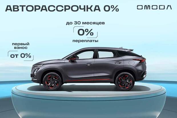 ) — 0%. При нарушении – 0,0001% годовых. Срок рассрочки от 1 до 30 мес. Лимит до 4 900 000 руб. на покупку новых автомобилей OMODA C5 при подключении Тарифного плана «Авто в рассрочку на 30 месяцев NEW»_«Остаточный платеж»». Остаточный платеж не более 30% от стоимости. Комиссия за подключение — 4/30 от суммы увеличенного лимита в рамках тарифного плана. Страхования автомобиля от рисков хищения, утраты обязательно. Залоговое обеспечение – залог приобретаемого автомобиля. Предложение действует с 09.10.2022 года по 28.02.2023 года (включительно). ПАО «Совкомбанк». Генеральная лицензия Банка России № 963 от 05.12.2014 г. Не оферта. Подробности уточняйте у сотрудников отдела продаж OMODA, ООО «Нижегородец Восток». Представленные на изображениях автомобили могут отличаться от серийных моделей. Указанное оборудование может быть опциональным.Реклама. ООО «Нижегородец Восток». Pb3XmBtzssDmp4sqcJB6UPBQMHnntU7c388CMmg