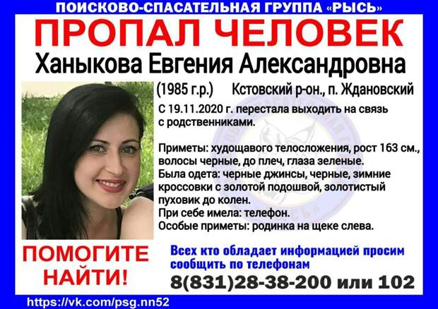 Как сообщили волонтёры поисково-спасательного центра «Рысь», 19 ноября Евгения перестала выходить на связь с родственниками.