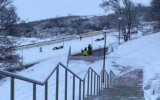 «В 6 утра дорожные рабочие вышли на расчистку остановок общественного транспорта, пешеходных спусков и подъёмов, лестниц и тротуаров, ведущих к медицинским учреждениям и другим социальным объектам», — сообщил Александр Кулагин.