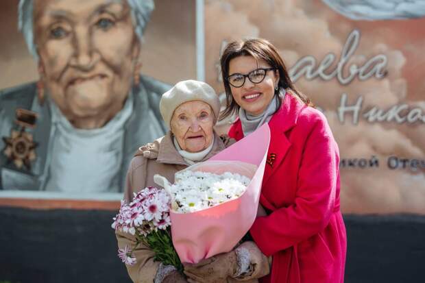 Евгения Николаевна ушла на фронт в 16 лет, с детства профессионально занималась стрельбой, поэтому ее распределили в стрелковый полк, где она была единственной девушкой. Участвовала в освобождении Украины, Молдавии, Румынии, Венгрии и Чехословакии, получила два серьезных ранения. «Очень красивый портрет, буду смотреть на него прямо из своего окошка! Особенно горжусь тем, что это инициатива молодежи. Это значит, что ребята помнят своих героев, гордятся подвигами прошлого. Нам, ветеранам, такое внимание очень приятно», — поделилась Евгения Николаевна. Волонтеры Победы подготовили для ветерана, которая лично присутствовала на открытии граффити, небольшой концерт с исполнением военных песен под звуки гармони. На встречу с Евгенией Николаевной пришли и соседи, которые поздравили ее с праздником и поблагодарили за мирное небо над головой, а добровольцы вручили цветы и подарки. «Молодые люди знают об основных исторических событиях, но мало слышали о героях прошлого. А ведь те, кто вершил историю, живут с нами по соседству. Для нас большая честь в этот предпраздничный день открыть арт-объект с портретом Евгении Николаевны — это гордость не только для сормовичей, но и для всех жителей Нижнего Новгорода», — рассказала руководитель НРО ВОД «Волонтеры Победы» Мария Самоделкина. Напомним, целью проекта «Образ Победы» является сохранение исторической памяти о Победе в Великой Отечественной войне посредством создания граффити патриотической направленности, выражение народной благодарности героям. По словам организаторов, в течение мая планируется открыть еще 20 арт-объектов, посвященных нижегородцам-участникам Великой Отечественной войны.Справка: Евгения Николаевна Нечаева — ветеран Великой Отечественной войны. Кавалер орденов Красной Звезды, Отечественной войны 1 степени, награждена более чем 25 медалями. Участница двух Парадов Победы на Красной площади. В годы войны Евгения Николаевна была снайпером, служила в 217‑м стрелковом полку II Украинского фронта, в составе которого прошла весь путь до победы. Войну снайпер Нечаева закончила в Чехословакии, а потом вернулась в родной Харьков. Там она встретила своего будущего мужа, с которым позже переехала в Горький, воспитала двоих сыновей. В 1983 году Евгения Николаевна организовала в г. Горьком «Клуб ветеранов».