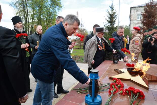 Все участники церемонии почтили минутой молчания память бойцов, павших на полях сражений Великой Отечественной войны, и возложили цветы к обелиску. «День Победы — это праздник каждого жителя нашей страны, он объединяет людей всех возрастов и поколений. Я рад, что частица Вечного огня из Дзержинска сегодня отправилась к нашим соседям, в Володарск. Уверен, что это еще крепче свяжет наши города. От имени всех дзержинцев поздравляю жителей Володарского округа с праздником! В этом году наши ближайшие соседи впервые встретят День Победы около собственного Вечного огня, и я искренне рад за них! Пусть этот огонь вечно светит в Володарске в память о тех, кто отдал свои жизни за нас!» — сказал Иван Носков. Как было отмечено на церемонии у мемориала памяти володарцам, погибшим во время Великой Отечественной войны, с начала XX века и по настоящее время в Володарском округе размещаются крупнейшие воинские полигоны. Так, каждый четвертый солдат, воевавший на полях сражений в 1941 – 1945 годы, был подготовлен в «Гороховецких лагерях» поселка Мулино. В поселке Смолино было испытано более 60 образцов различных систем, в том числе известные «Катюши», а в поселке Центральном испытывали путеразрушители, специнструмент и новые конструкции мин. Здесь было развернуто несколько эвакуационных госпиталей, шла заготовка древесины для оборонительных сооружений. «Это огромная честь и слава — быть наследниками Великой Победы и жить в могучем и сильном государстве! Горжусь тем, что сегодня мы зажгли Вечный огонь в Володарском округе. Это память, которую мы будем сохранять и приумножать, передавать ее нашим потомкам, чтобы слава о подвиге советского народа в Великой Отечественной войне жила вечно», — сказал Геннадий Щанников. В ходе церемонии Иван Носков совместно с военным комиссаром г. о. г. Дзержинск и Володарского района полковником Игорем Ануфриевым вручил орден Мужества участнику специальной военной операции из Дзержинска Дмитрию Зятеву. Соответствующий указ был подписан президентом РФ Владимиром Путиным. Справка: Вечный огонь в Дзержинске был зажжён от Вечного огня с Марсова поля в Ленинграде. 9 мая 1965 года в Дзержинске состоялось торжественное открытие Обелиска Славы на площади Героев. Почётное право зажечь огонь было предоставлено представителям трёх поколений: Герою Советского Союза Николаю Бредихину, комсомольцу Горячеву и пионеру Разумовскому.