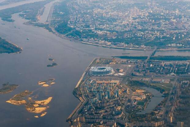 Свой снимок он опубликовал в группе «Мой Нижний Новгород». На фото попали стадион «Нижний Новгород» и знаменитое слияние рек. «Осенний Нижний из иллюминатора самолета», — подписал свой снимок неизвестный.