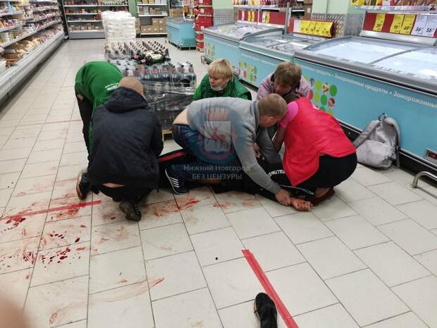 Сотрудники магазина быстро среагировали, они поймали мужчину и вызвали ему скорую.«Его держали впятером. Парень постоянно говорил: «Убейте меня». Магазин потом закрыли», — сообщает автор фото.
