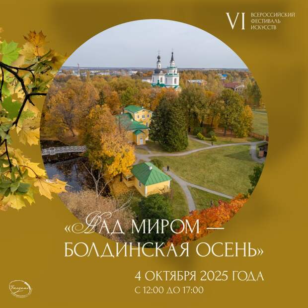 В музее-заповеднике А. С. Пушкина «Болдино» 4 октября состоится VI фестиваль искусств «Над миром — Болдинская осень». Об этом сообщает министерство культуры Нижегородской области. В этот день с 12.00 до 17.00 в Большом Болдине пройдут концерты, показы спектаклей, арт-встречи. «Всероссийский фестиваль искусств „Над миром — Болдинская осень“ приурочен к юбилейной дате — 195-летию „Болдинской осени“.