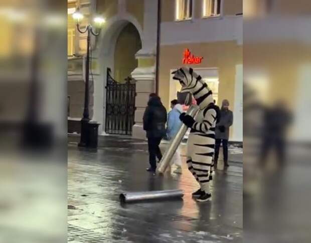 Труба рухнула вместе со снегом, упавшим с крыши. Жильцы дома вызвали рабочих ДУКа, но пока их ждали, трубу унесла ростовая кукла-зебра. Эта новость совсем не смутила сотрудников управляющей компании.