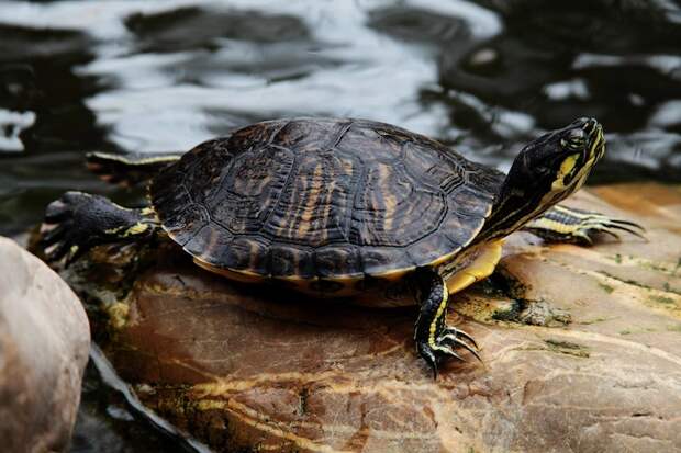 Вид рептилии Сергей определил по красным полоскам рядом с глазами. По информации из Википедии, красноухие черепахи могут адаптироваться к зиме в нашей полосе и жить в разных водоемах города.