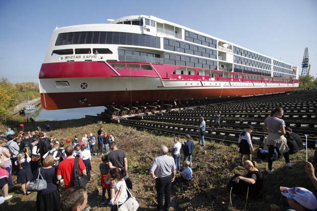 «Первое судно нового проекта строить всегда трудно. Многие задачи приходится решать впервые, подсмотреть и перенять не у кого. Суда такого класса, как круизный лайнер „Мустай Карим“, в России не строились вообще никогда. Этот теплоход рассчитан на 329 пассажиров и 144 члена экипажа, причем по уровню комфорта он не уступает пятизвездочному отелю. Это самый сложный проект за всю историю гражданского судостроения завода», — сказал Михаил Першин.