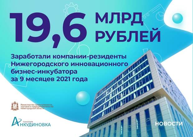 Выручка компаний-резидентов Нижегородского инновационного бизнес-инкубатора (НИБИ) за 9 месяцев 2021-го составила 19,6 млрд рублей, увеличившись почти на 30% по сравнению с аналогичным периодом прошлого года. По словам экспертов, такого роста удалось достичь благодаря комплексным мерам поддержки развития малых инновационных предприятий на всех стадиях.