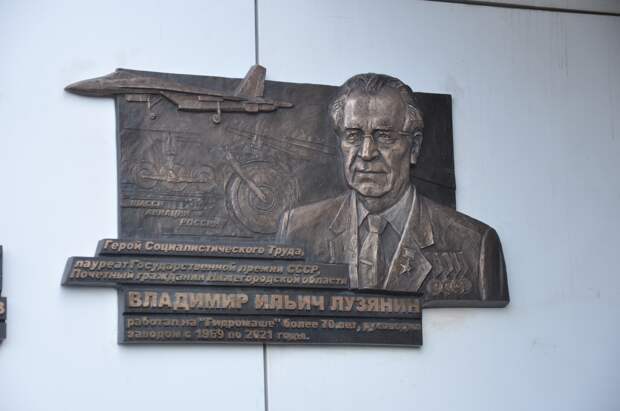 На памятнике – Владимир Ильич возле стойки шасси одного из самолётов, на постаменте надпись: «Лузянин Владимир Ильич – создатель специализированного производства шасси и гидроцилиндров для летательных аппаратов в России».– Когда 18 апреля прошлого года мы открывали мемориальную доску Владимиру Ильичу на фасаде административного корпуса нашего предприятия, работа над памятником уже шла, – рассказывает генеральный директор НАО «Гидромаш» им. В. И. Лузянина Александр Лузянин. – Мы ставили перед собой цель добиться эффекта присутствия, и вроде бы у нас получилось. Надеюсь, наши работники и все те, кто придёт к нам в гости в день рождения Владимира Ильича, оценят памятник по достоинству.