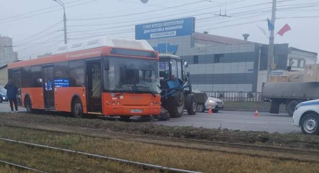 Столкновение произошло на улице Коминтерна 5 ноября. В отделе пропаганды областного УГИБДД сообщили, что 53-летний водитель трактора при перестроении не убедился в безопасности манёвра и столкнулся с автобусом.