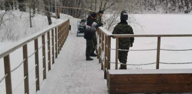 Сейчас рабочие восстанавливают ограждение — заменяют трос, опоры, обновляют деревянные перила.