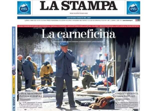 В URA.RU подчеркнули, что итальянское издание на первой странице газеты опубликовало снимок URA.RU с заголовком La carneficina («Резня»). А также под фотографией они подписали: «Вот так Киев сталкивается с финальной атакой российских войск».