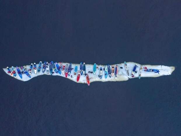 Профессионалы и любители сап-серфинга открыли новый сезон в Нижнем Новгороде. В честь этого они «угнали» льдину, дрейфовавшую на слиянии Оки и Волги.