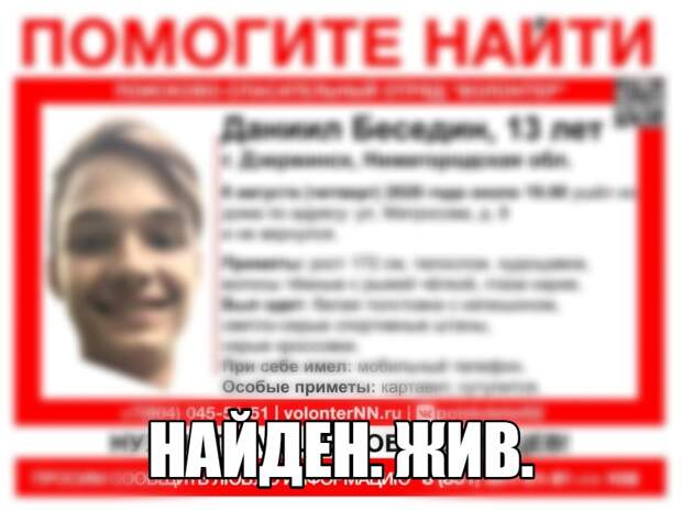 Пропавшего 13-летнего Даниила Беседина нашли живым в Дзержинске. Мальчика искали почти четыре дня.