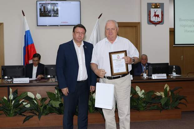 Также на заседании состоялось вручение нижегородцам наград, приуроченных к 800-летию со дня основания города. Так, за высокие профессиональные достижения и заслуги в сфере общественной деятельности юбилейная медаль «В память 800-летия Нижнего Новгорода» была вручена депутату городской Думы Нижнего Новгорода IV и V созывов Игорю Кондратьеву. Старший инспектор дорожно-патрульной службы ГИБДД УМВД России по Нижнему Новгороду Василий Зайцев был отмечен памятным знаком «800 лет городу Нижнему Новгороду».