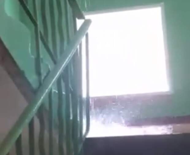 Водопад образовался в подъезде жилого дома на улице Движенцев в Нижнем Новгороде.