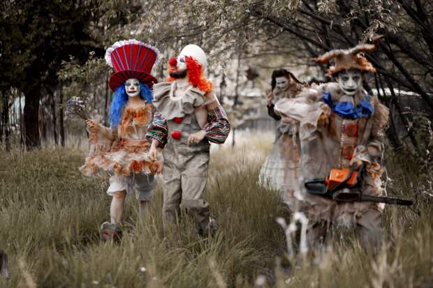 Актеры предлагают зрителям представить, что жизнь как представление на арене, где люди — клоуны и каждый «кривляется» по-своему.