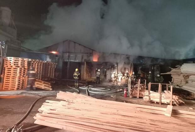 В ангаре хранились деревянные поддоны.С огнём боролись 70 человек при 17 единицах техники. В 2.26 пожар был локализован, в 3.34 ликвидирован. О причинах возгорания пока не сообщается.
