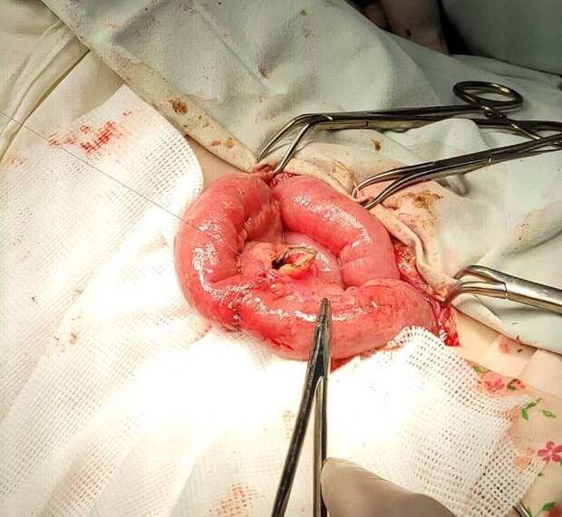 Страшная правда открылась после диагностической лапароскопии: у маленького пациента разрыв стенки кишки и содержимое кишечника в животе. После открытой операции парня перевели в реанимацию с шитым кишечником, отмытым животом и страховым дренажем. Теперь мальчику предстоит длительное лечение.