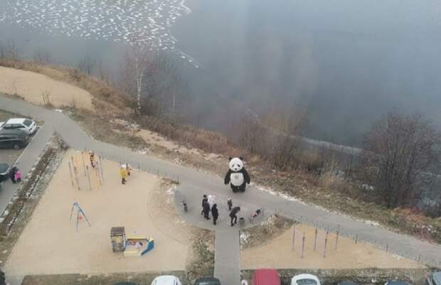 Огромная панда была замечена в микрорайоне Бурнаковский в Нижнем Новгороде в минувшие выходные. Правда, не настоящая, а игрушечная.