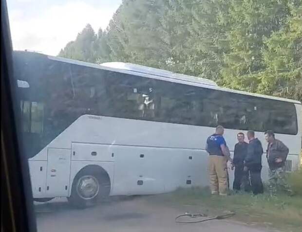 «Пожарно-спасательные подразделения помогли вернуть автобус на дорогу.