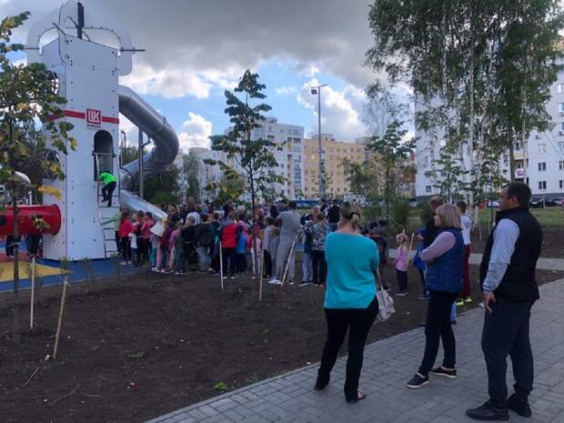 Родители с детьми стоят в очередях, чтобы прокатиться на горках!» — написано под снимками.Детский городок был построен ко дню рождения Кстовского района. Площадку открыли 7 сентября.