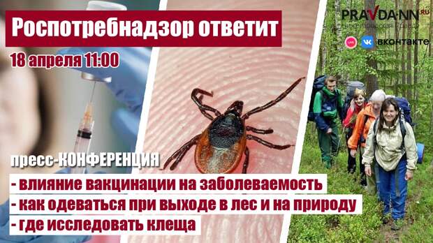 Роспотребнадзор в прямом эфире на сайте pravda-nn.ru расскажет о профилактике клещевых инфекций и об изменениях в Национальном календаре прививок. 18 апреля в 11.00 заместитель руководителя Управления Роспотребнадзора Наталья Садыкова ответит на вопросы нижегородцев о влиянии вакцинации на заболеваемость, расскажет о достижениях вакцинопрофилактики в регионе, а также о работе «горячей линии».
