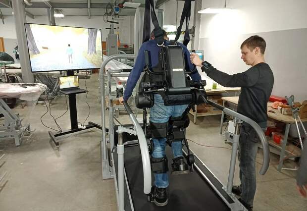 Может дополнительно комплектоваться системой виртуальной симуляции прогулки «Мадис».«Аватар на экране точь-в-точь повторяет шаги за пациентом, облаченным в экзоскелет, и позволяет разнообразить процесс реабилитации, придать ему элемент компьютерной игры. Локомоторный комплекс планируется использовать в одном из реабилитационных центров в Дели», — рассказал руководитель научно-производственной фирмы Александр Емельянов.