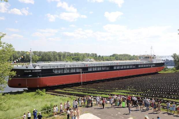 Сегодня, 9 июля, на заводе «Красное Сормово» торжественно спустили на воду сухогруз проекта RSD59 «Альфа Аквилон». Он стал 29-м теплоходом этого проекта, который сошёл со стапеля сормовской верфи.