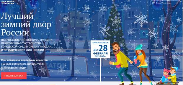 Партия «Единая Россия» проводит Всероссийский конкурс «Лучший зимний двор России», направленный на поиск лучших практик благоустройства городской среды. Победителей выберут по следующим номинациям: