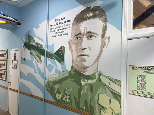 В детском клубе «Юный авиатор» Автозаводского района Нижнего Новгорода 7 сентября в рамках проекта «Образ Победы состоялось открытие арт-объекта в память о Герое Советского Союза, летчике-штурмовике, капитане Алексее Поющеве. Организатором выступило региональное отделение Всероссийского общественного движения «Волонтеры Победы» при поддержке Фонда президентских грантов.