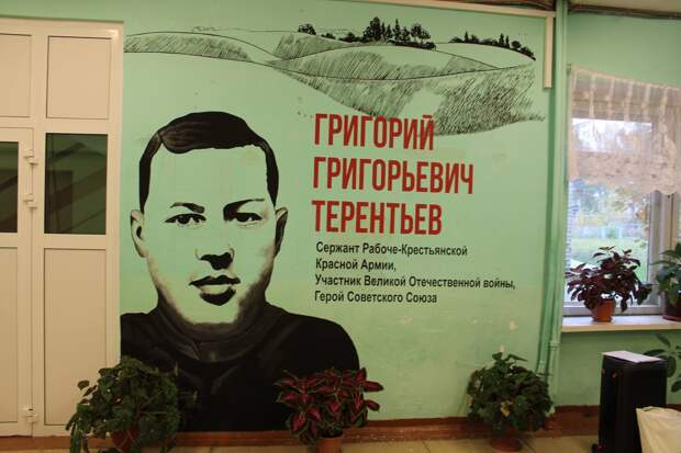 Григорий Григорьевич Терентьев награжден орденами Ленина, Отечественной войны 2‑й степени. В поселке Память Парижской Коммуны его именем названа улица, в школе установлен бюст и памятная доска, а теперь – и арт-объект с изображением героя. «В октябре 1944 года орудийный расчет сержанта Терентьева отбил атаку вражеских танков. Григорий Григорьевич Терентьев был ранен, поджёг вражеский бронетранспортер, в одиночку продолжал отражать атаки и погиб. Его подвиг учит нас истинному мужеству и силе духа», — сказала руководитель НРО ВОД «Волонтеры Победы» Мария Самоделкина. В торжественной церемонии открытия граффити в память Григория Терентьева приняли участие волонтеры Победы, ученики и педагоги школ округа, а творческие коллективы исполнили патриотические композиции.