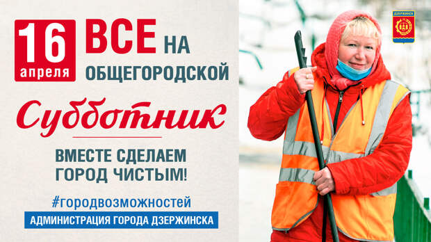 Кроме того, по поручению главы города до начала мая должна быть обновлена дорожная разметка.«Генеральная уборка города начинается на этой неделе, и к майским праздникам в Дзержинске и поселках должны быть чистота и порядок. Это наше общее дело! Подключаются муниципальные и некоммерческие организации, образовательные и культурные учреждения, коммунальные и дорожные службы, бизнес и, конечно, неравнодушные жители, – отметил глава Дзержинска Иван Носков. – Общегородской субботник пройдет 16 апреля. Уверен, дзержинцы примут в нем активное участие. Каждый, кто ежегодно принимает участие в субботниках, прекрасно знает, что это личный, но ценный для всего Дзержинска вклад жителей в благоустройство города. Субботник – это общий созидательный труд, позволяющий чувствовать и ощущать себя горожанином».