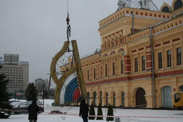 Сегодня на Нижегородской ярмарке произошло историческое событие. С главного здания сняли логопиты в виде буквы «Я».
