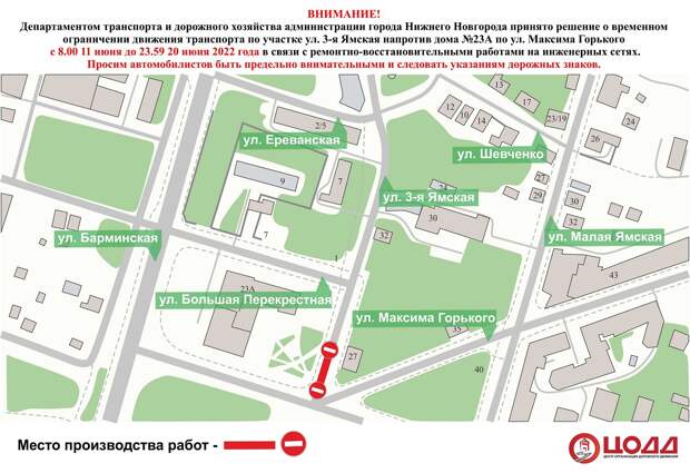 Объехать закрытый участок дороги можно будет по улицам Максима Горького, Барминской и Большой Перекрестной, либо по улицам Шевченко, Малой Ямской и Максима Горького. Кроме того, на данном участке в указанное время будет запрещена стоянка и парковка транспортных средств. Припаркованные автомобили будут перемещены на охраняемую стоянку», – рассказали в департаменте.Напомним, редакция сайта pravda-nn.ru создала телеграм-канал «Дорожные работы», где оперативно сообщается об участках перекрытых дорог в Нижнем Новгороде. Подписывайтесь, чтобы быть в курсе!