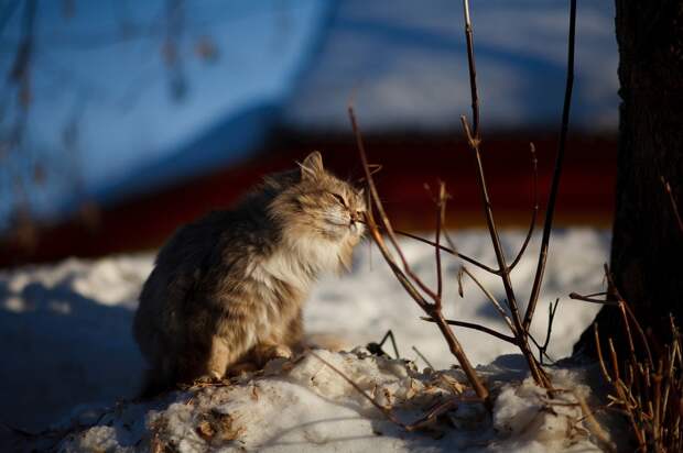 Пушистый романтик в цветах или кот-бандит с бесстрашной мордой и боевым видом, коты на заборе, на крыльце, в кустах, на лавке, среди ветвей, кошечка, заглядывающая с улицы в дом через окно, – сюжетов множество, а деревенские пейзажи создают особый колорит. Главное – чтобы модель не убежала. Это разве что Филя любит фотографироваться. А так кошки реагируют по-разному.