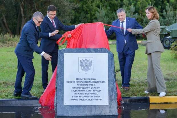 Памятный знак на месте, где будет располагаться стела «Город трудовой доблести», установлен в Нижнем Новгороде в парке Победы. В мероприятии приняли участие заместитель губернатора Нижегородской области Петр Банников, глава города Нижнего Новгорода Юрий Шалабаев, министр молодежной политики Нижегородской области Светлана Ануфриева, руководитель нижегородского отделения Российского военно-исторического общества Николай Лешков.
