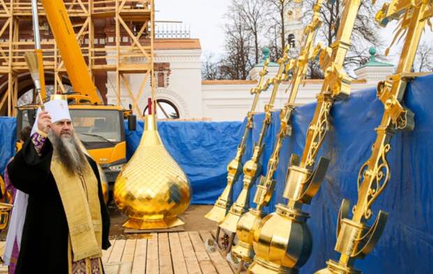 Глава Нижегородской митрополии также поблагодарил всех, кто вносит свой вклад в общее дело. После чина освящения начались работы по установке куполов и крестов.