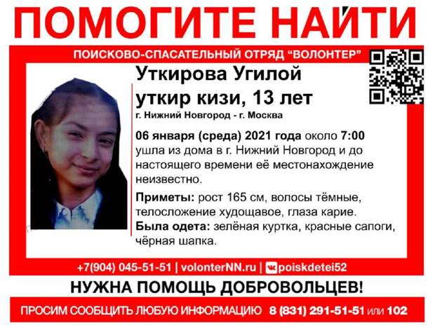 В Нижнем Новгороде пропала 13-летняя Угилой уткир кизи Уткирова. Девочку-подростка разыскивают около двух суток.